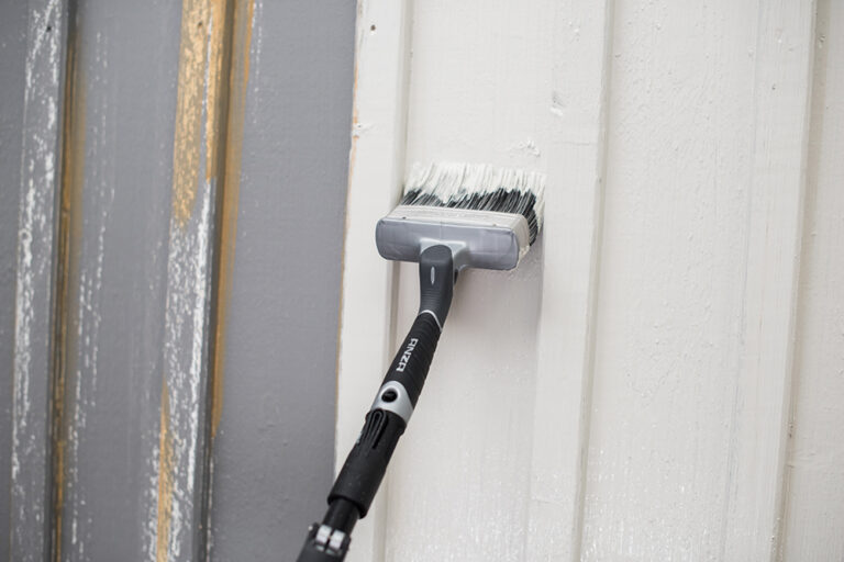 You’ll need at least two brushes: a wide outdoor brush that absorbs a lot of paint, so you don’t have to dip over and over again, and a long angled brush for all those hard-to-reach areas. If you paint with the traditional swedish “Rödfärg” (distemper/red paint), you need a special brush for this type of paint.